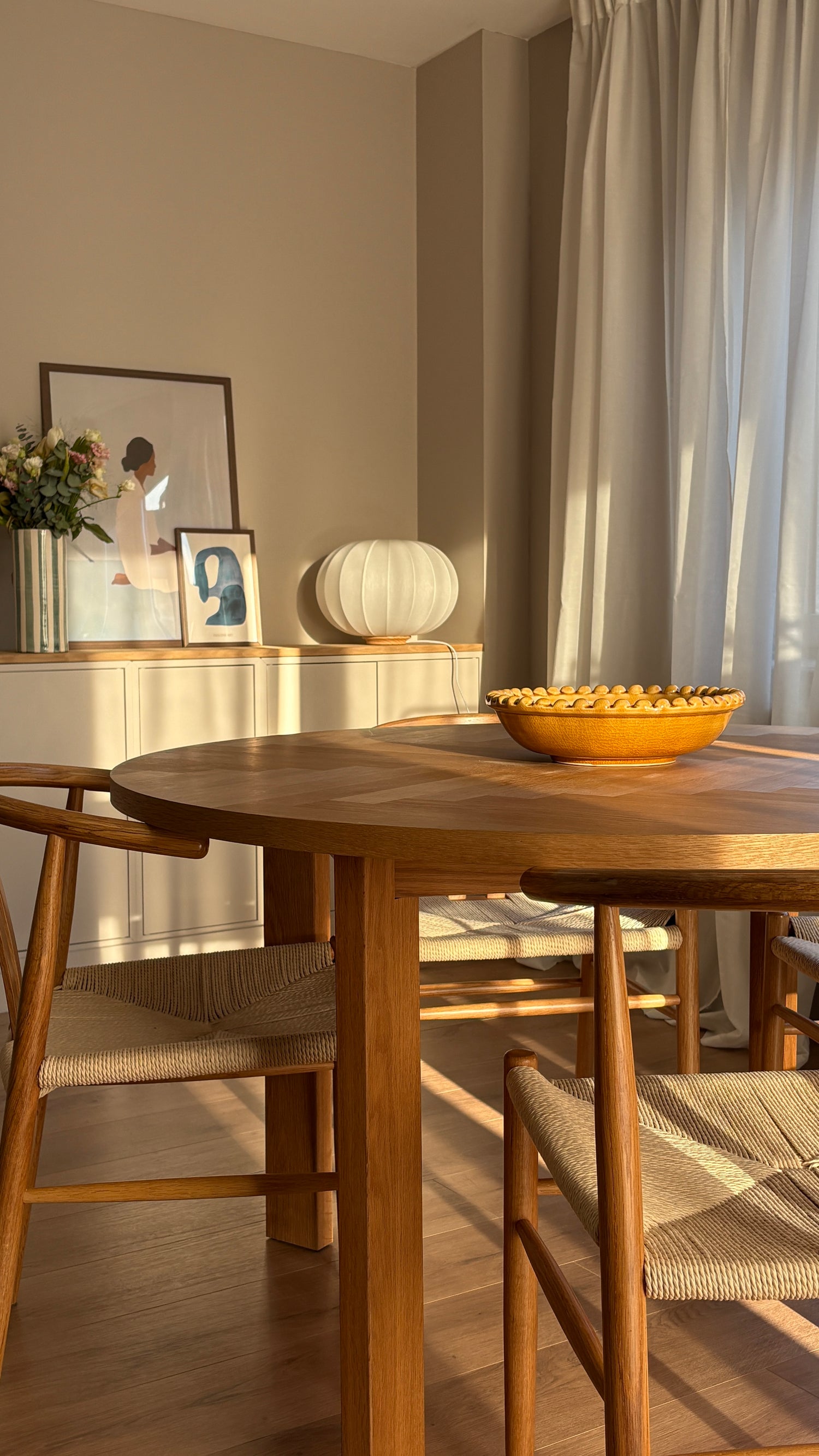 Une table simple, des matières naturelles et cette pièce baignée de soleil.