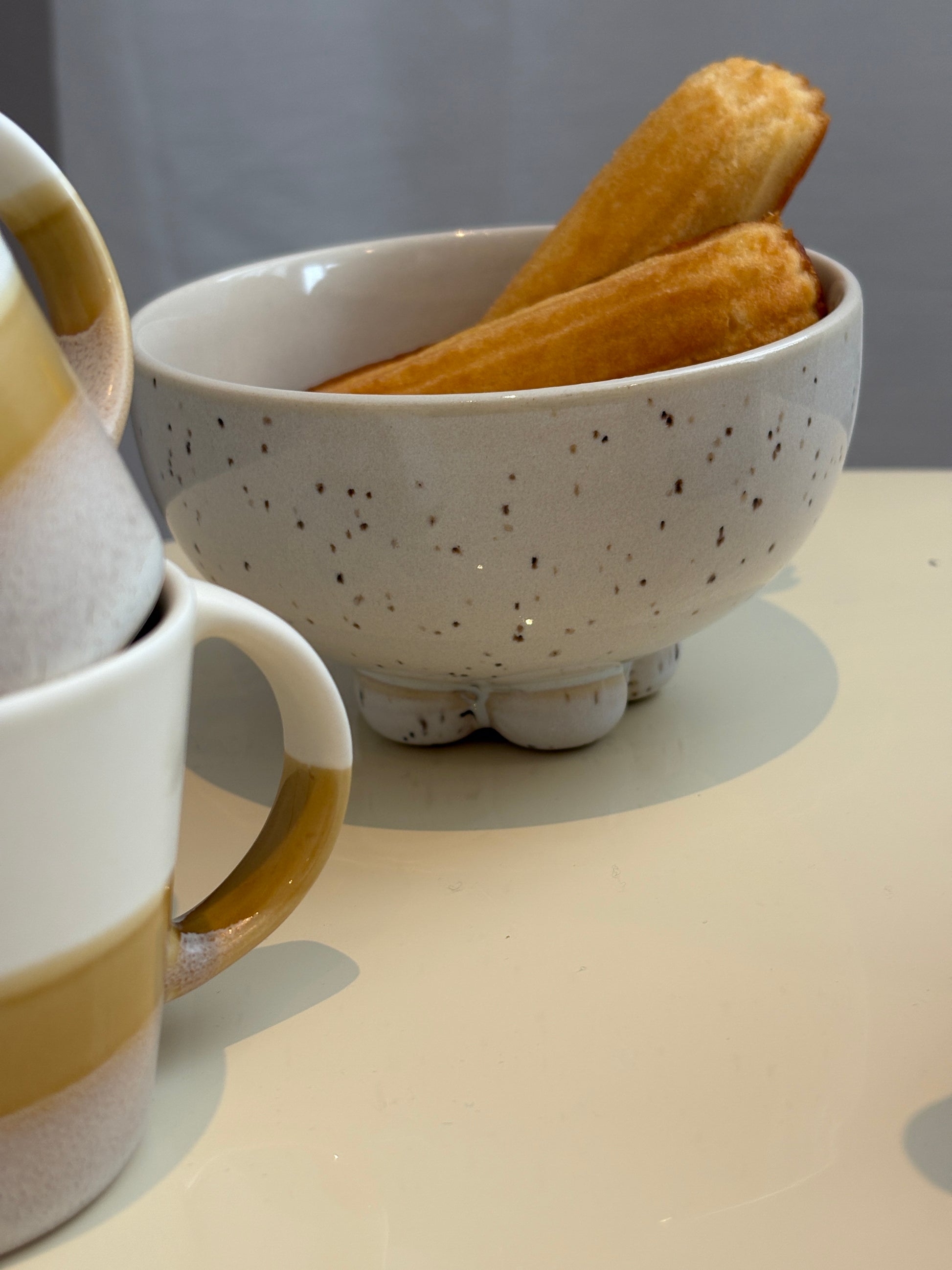 Ce bol en grès conjugue authenticité et modernité avec sa finition mouchetée et sa base striée. Sa texture naturelle et ses tons chauds en font un indispensable du quotidien, que ce soit pour un petit-déjeuner réconfortant ou une soupe légère.