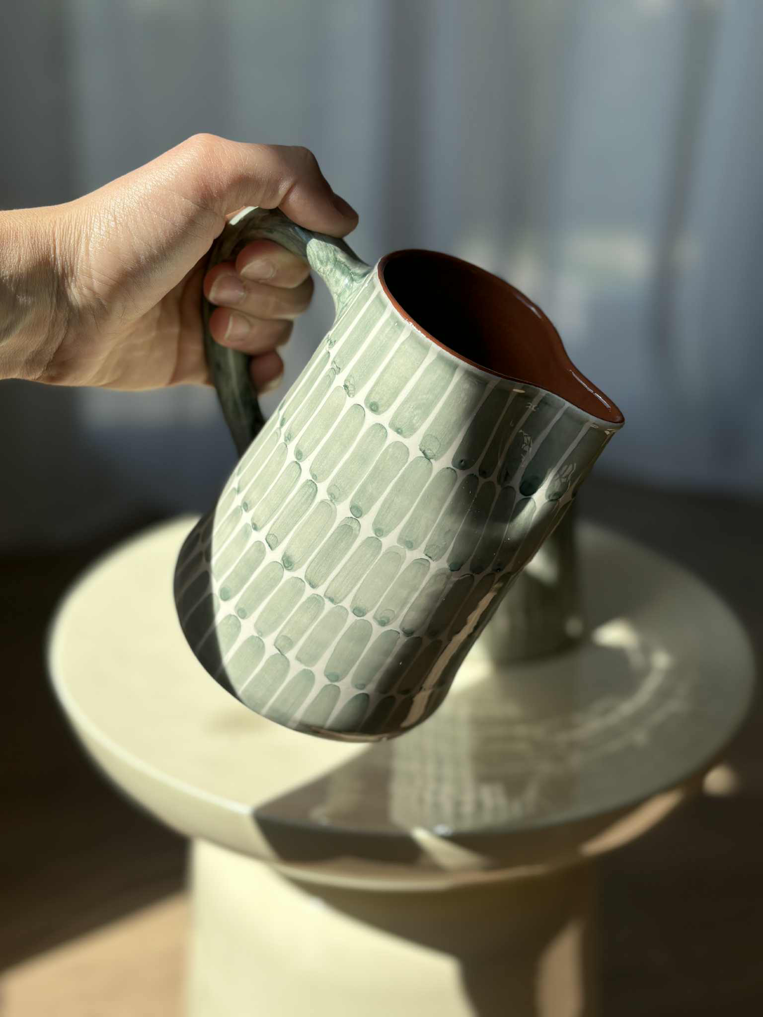 Cruche en céramique artisanale Vert sauge