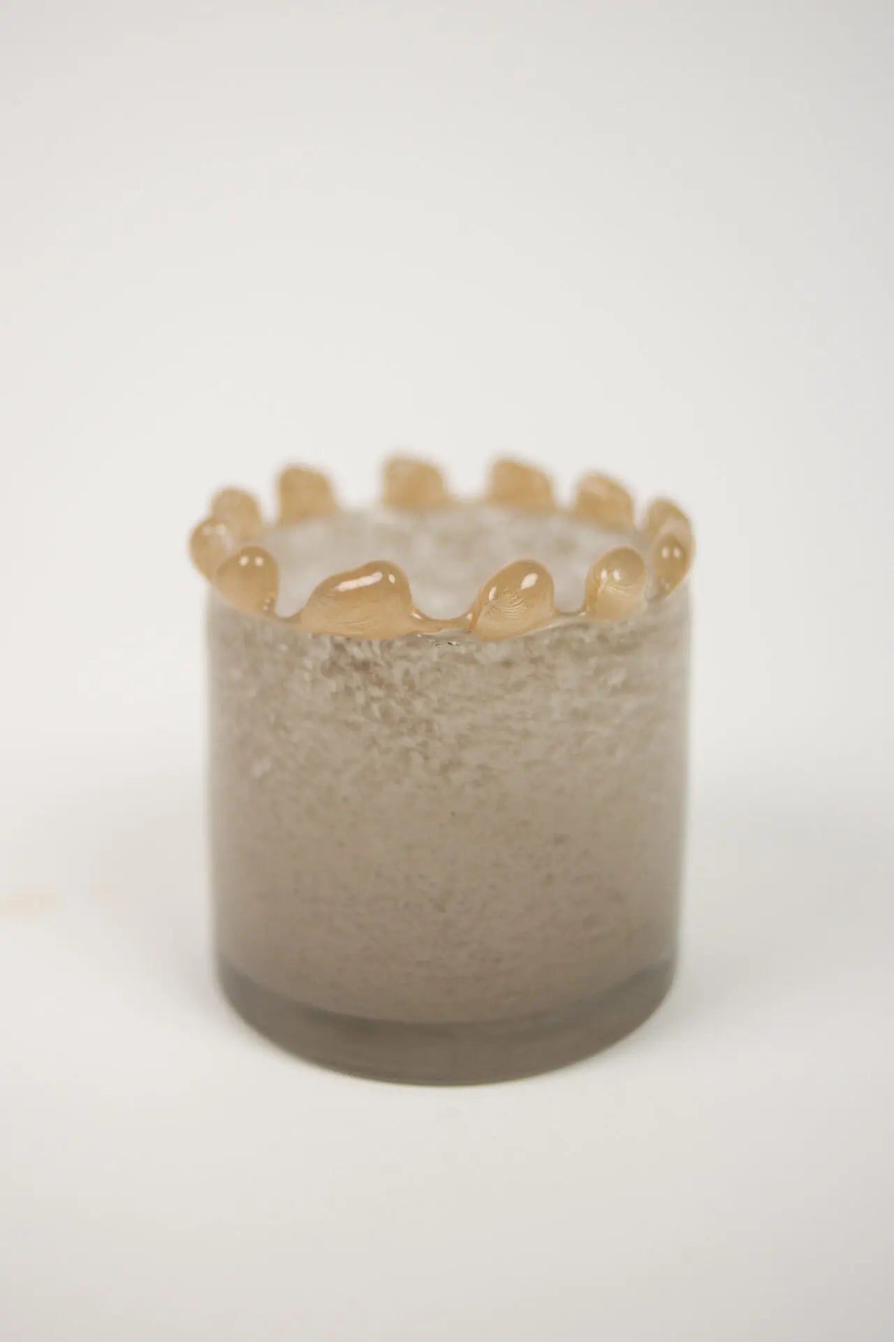 Une lanterne en verre luxueuse avec des points décoratifs le long du bord, qui donne une sensation ludique et joyeuse.