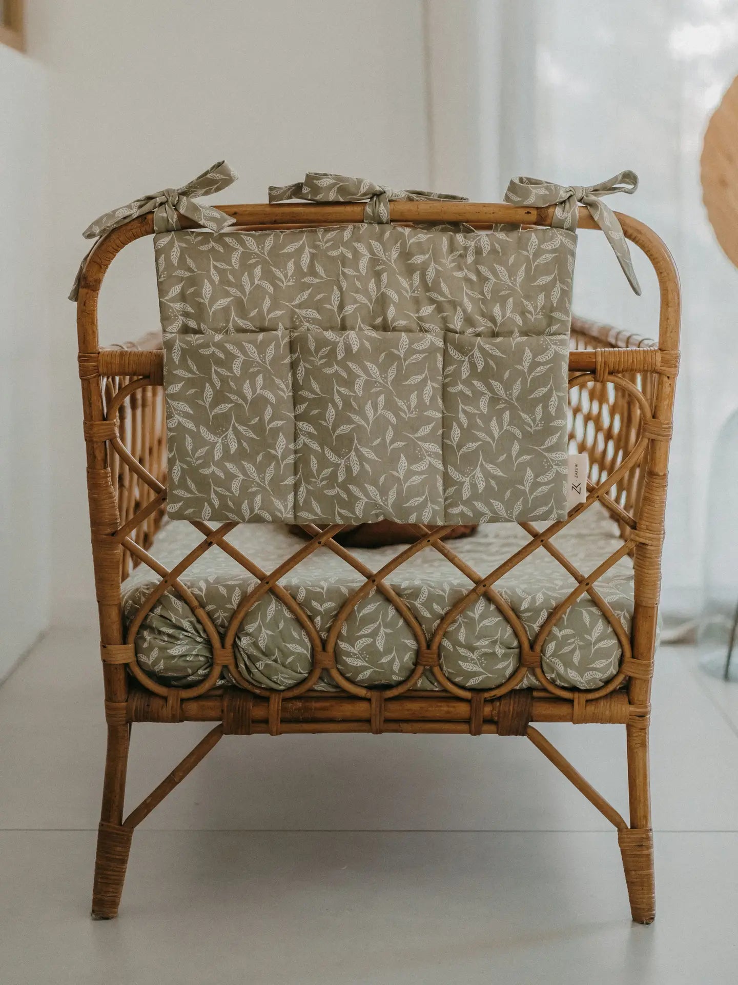 Cette pochette de lit pour bébé est l'accessoire pratique et élégant pour organiser les essentiels de votre tout-petit. Confectionnée en double gaze de coton, elle est douce au toucher et s'intègre parfaitement à la décoration de la chambre. Ses poches spacieuses permettent de ranger les doudous, tétines et autres indispensables, toujours à portée de main pour le coucher de bébé. Avec ses motifs délicats et intemporels, cette pochette allie fonctionnalité et esthétisme, simplifiant la routine du soir.