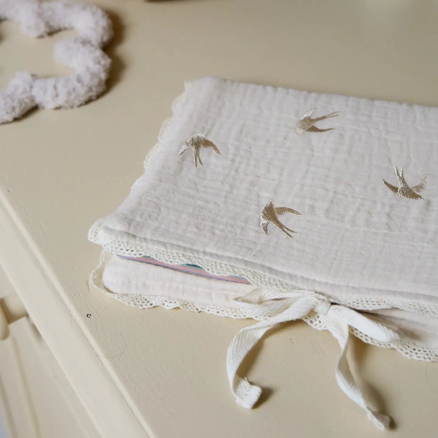 Ce protège carnet de santé brodé hirondelles vous accompagnera toute une vie ! Il est parfaitement adapté au format universel des carnets de santé de nos bouts de choux, hyper pratique, doux, et parfait pour être transporté dans un sac à langer. Une belle idée cadeau de naissance qui restera longtemps à vos côtés.