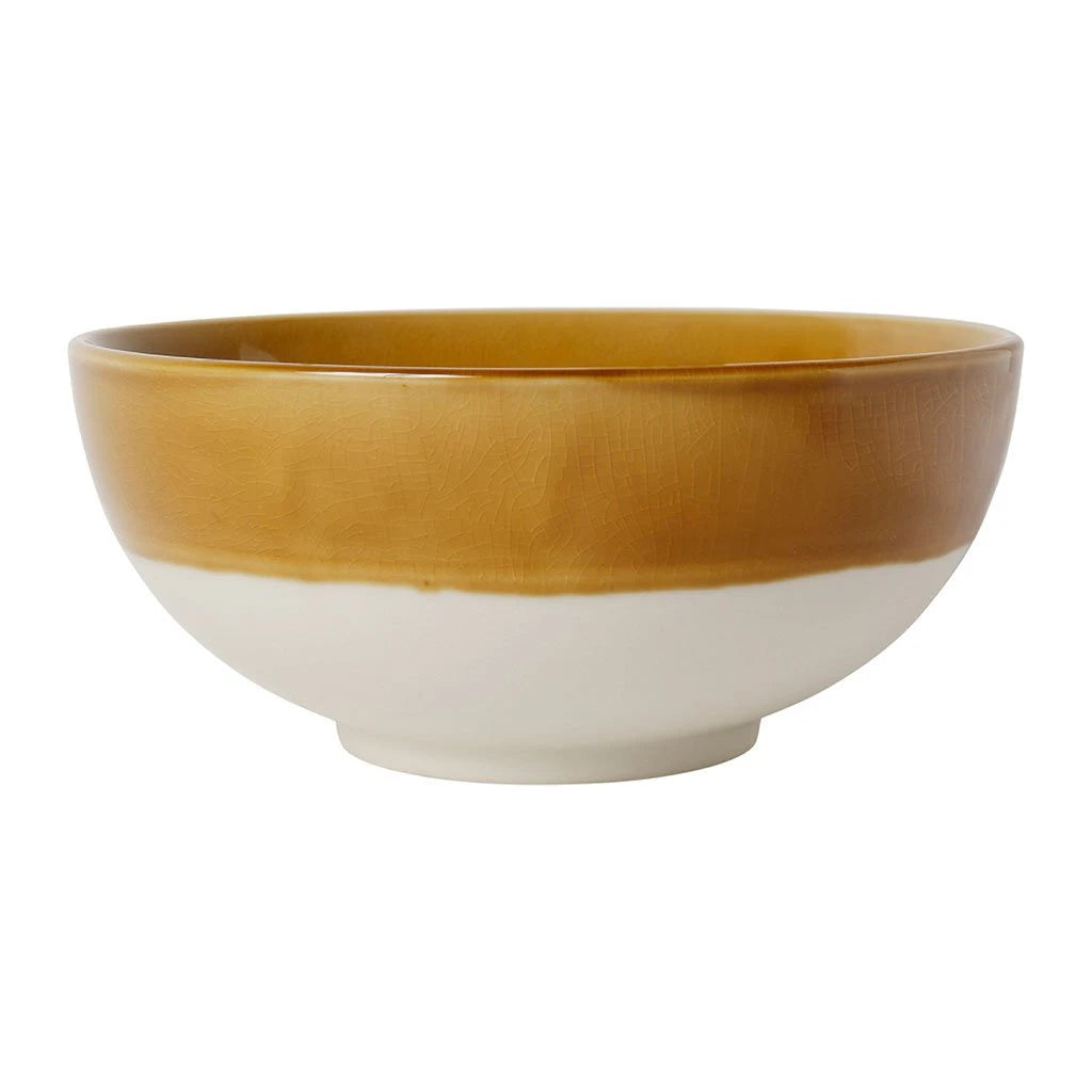 Ce saladier en grès allie la douceur d’un blanc mat à la chaleur d’un moutarde profond pour un contraste aussi apaisant que moderne. Parfait pour servir salades, fruits ou plats familiaux avec élégance, il se marie à merveille avec une vaisselle naturelle et authentique.